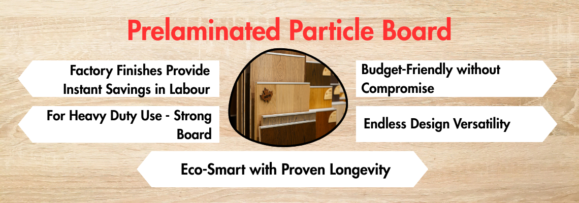 - Pre-laminated Particle Board offers wood grains and textures, and it comes borderless and ready to dispatch.